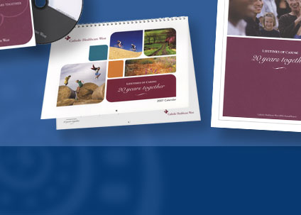 OBJECTIVE: Catholic Healthcare West publishes its annual report together with a calendar and a DVD showcasing achievements of the past year. CHW asked Donoughe Design for help with design and production of the material.