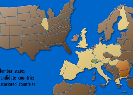 Map illustration for the International Research Project Perebar. The map is highlighting the countries participating in the research project.