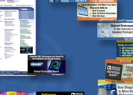 Web banner ads: animated and stationary banners produced in GIF and FLASH format for the company and associated web sites of Analog Devices Inc. in Norwood, Massachusetts.
