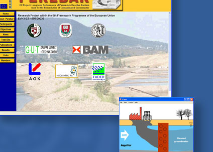 Online portal: the web site opens with a flash landing page illustrating the functions of the Permeable Reactive Barrier developed by the research group. The portal fascilitated PR for the project while offering communication tools between international project participants. Head quarter in Berlin, Germany.